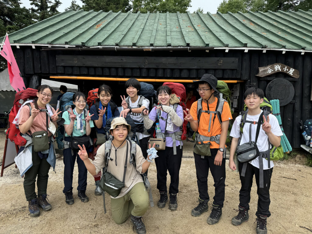 ゆっくり登って、ベンチで休憩を繰り返します。ガイドのAさんは、この山の植生の移り変わりやコンパスの使い方を丁寧に教えてくれました。途中で先頭を歩きましたが、後ろの部員たちと間が空いてないか確認したり、他の登山客と鉢合わせた時、どのタイミングで道を譲るかなど、常に考えていなくてはならないので大変でした。合戦小屋という休憩所でスイカを食べましたが、疲れた体にスイカの甘さが染みてとてもおいしかったです。