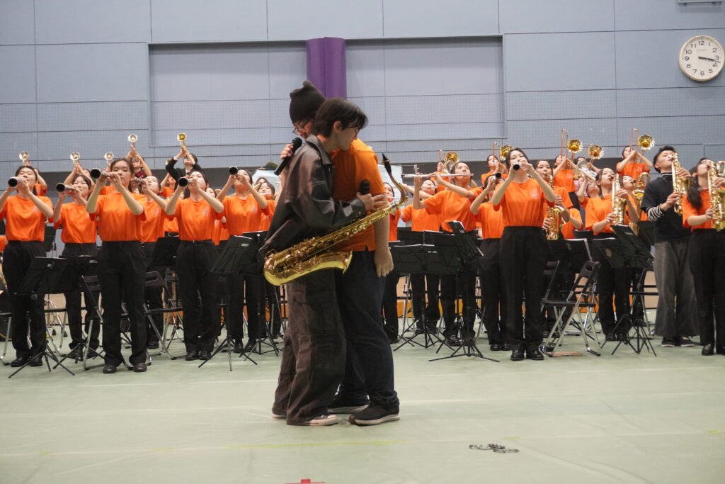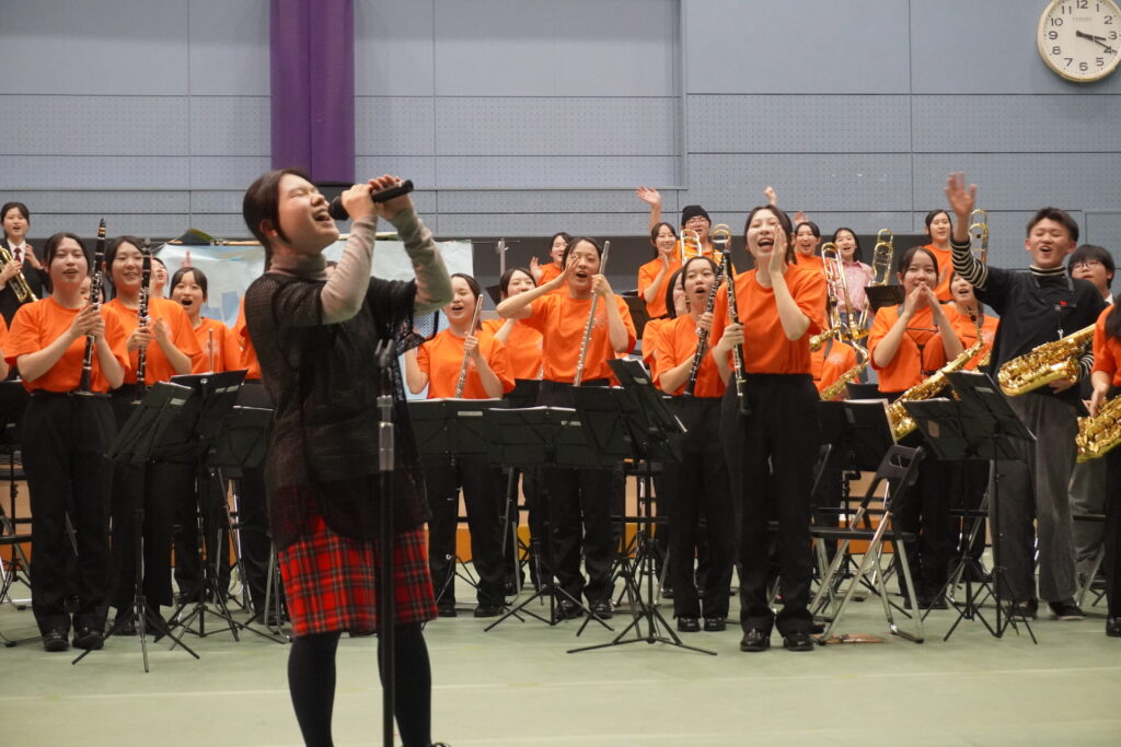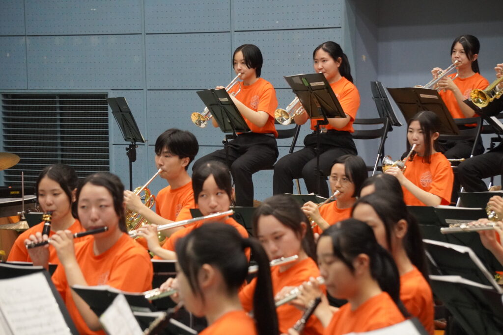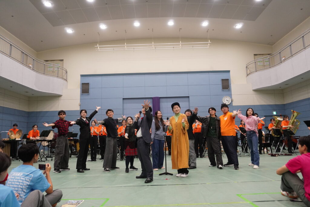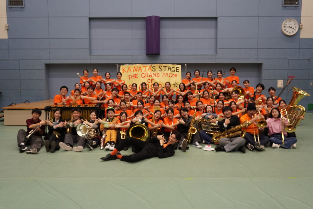 私たちは、昨年度の遥叶(はるか)の代のスタジオジブリ作品をメドレー形式でお送りし、見事グランプリに輝いた音楽劇「スタジオハルカ」を超えることを目標に取り組んでまいりました。我々、奏向(かなた)の代で作り上げた「KANATA’s STAGE」では、構成や脚本、装飾等すべてを部員主体で作り上げてきました。合奏では、演技や台詞、演奏の音量バランスや噛み合わせにおいて試行錯誤を重ねました。今年もグランプリをいただくことができ、一つ目標を達成できた喜びと同時に、この公演を通して、演奏面の課題を再認識し、自分たちのするべき練習について考える良い機会となりました。年明けの新人大会に向けて部員一丸となって取り組んでまいります。
