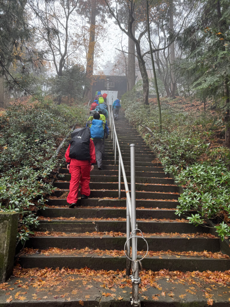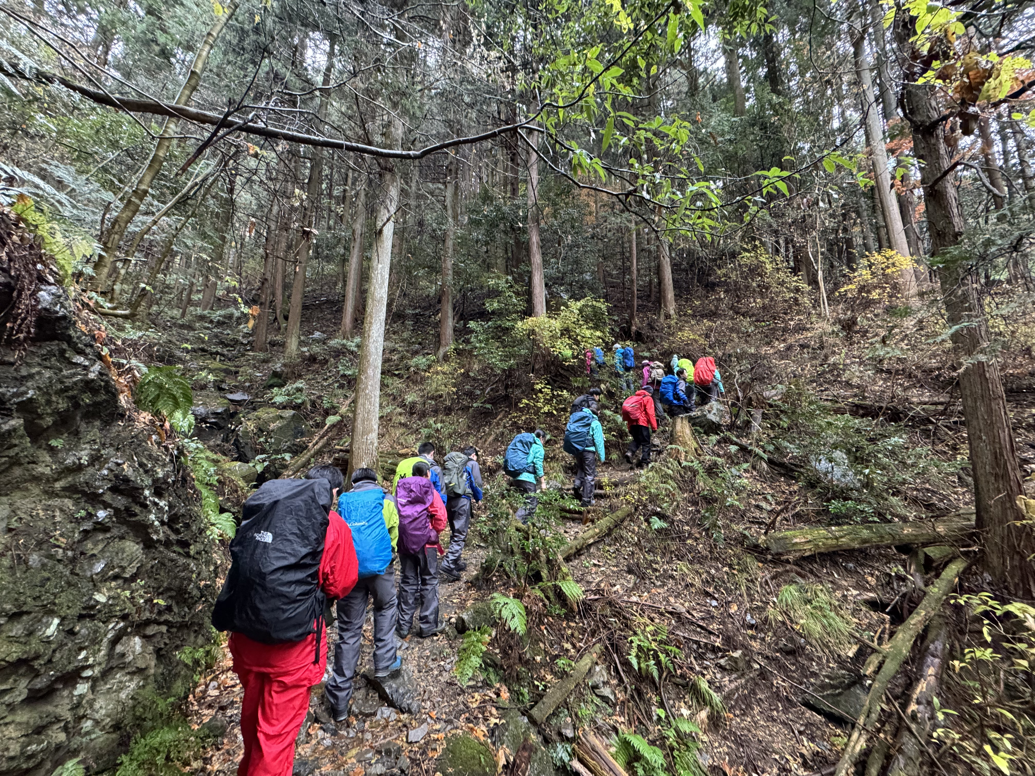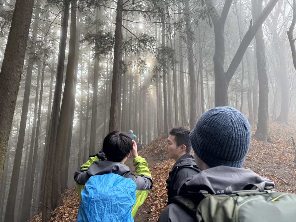 行程自体はそこまできつくなく、登山中は会話をしながら楽しく歩くことができました。天候には恵まれませんでしたが、無事に全員で下山することができました!