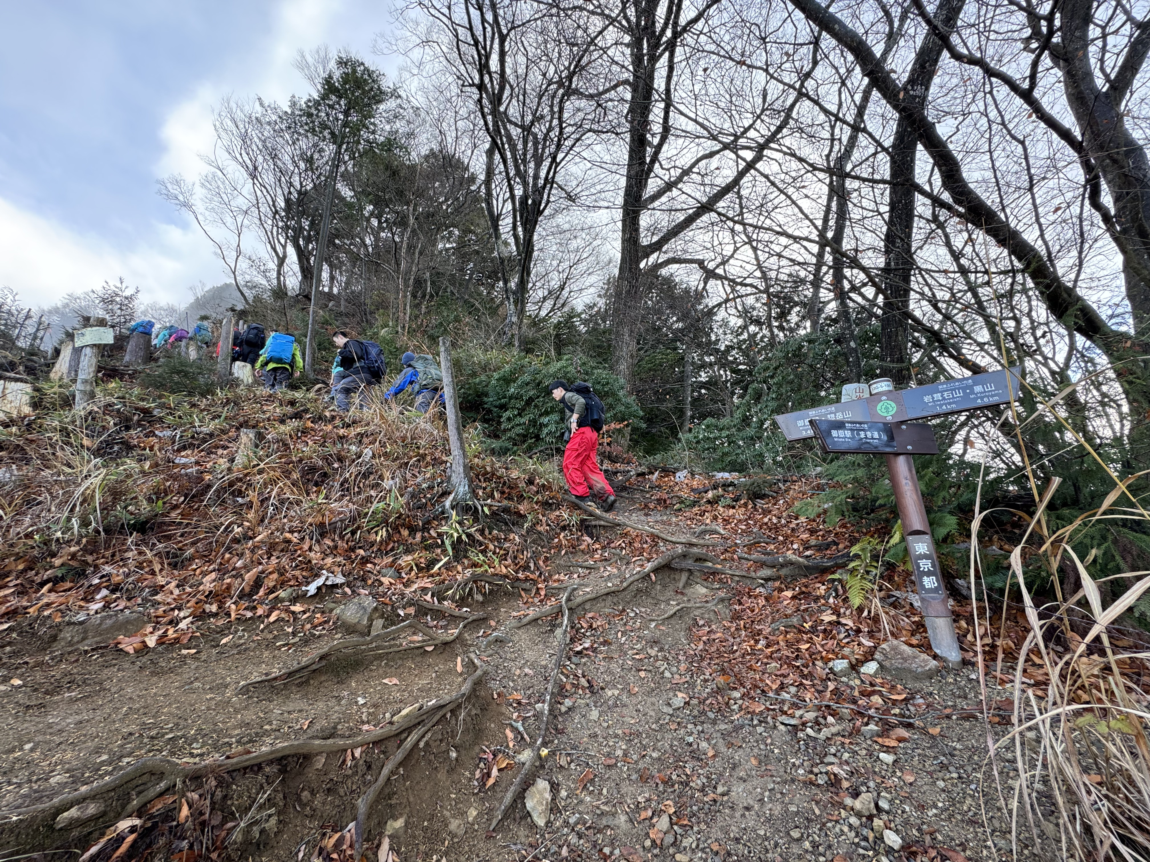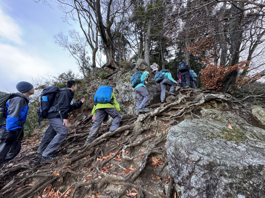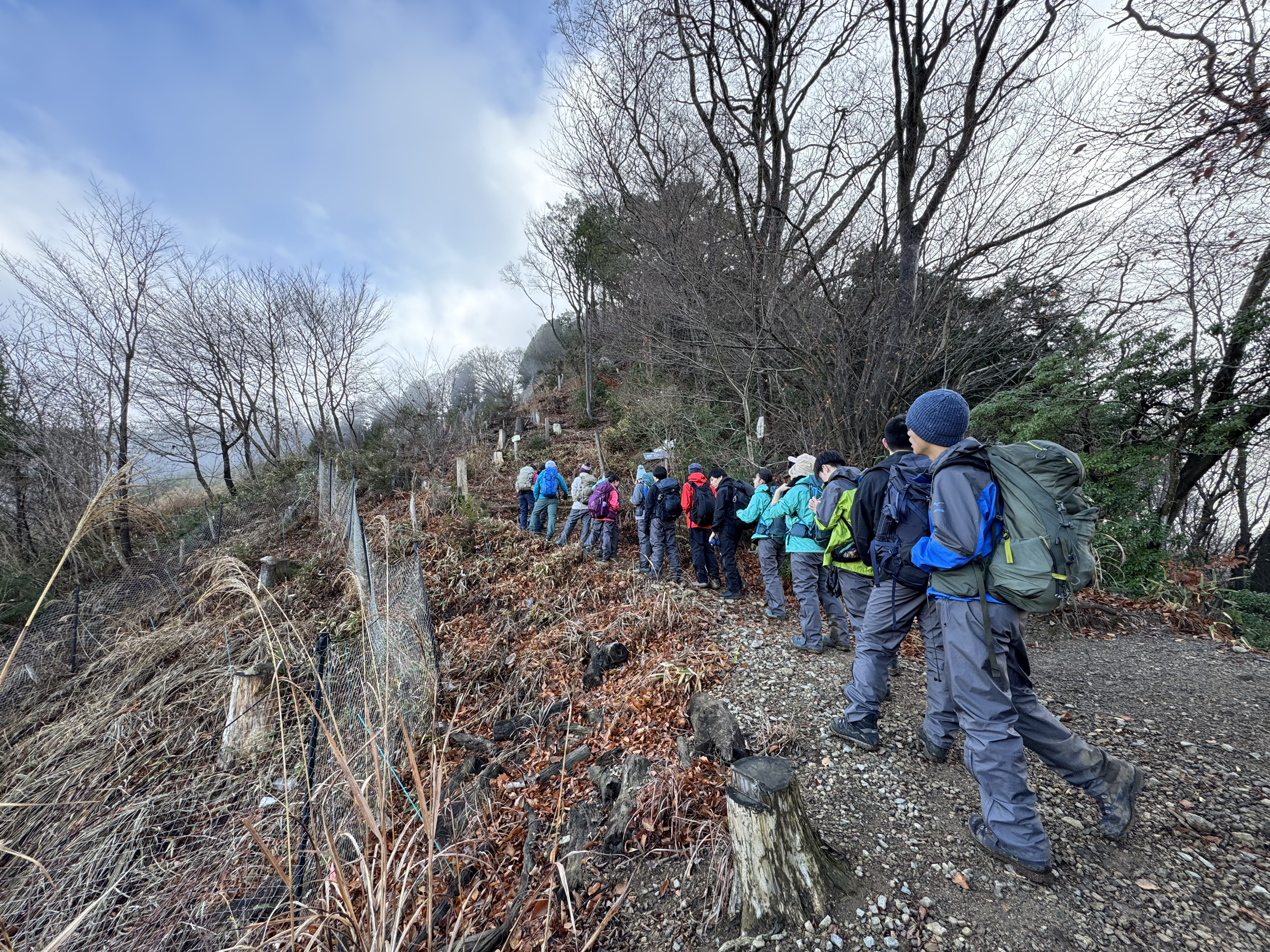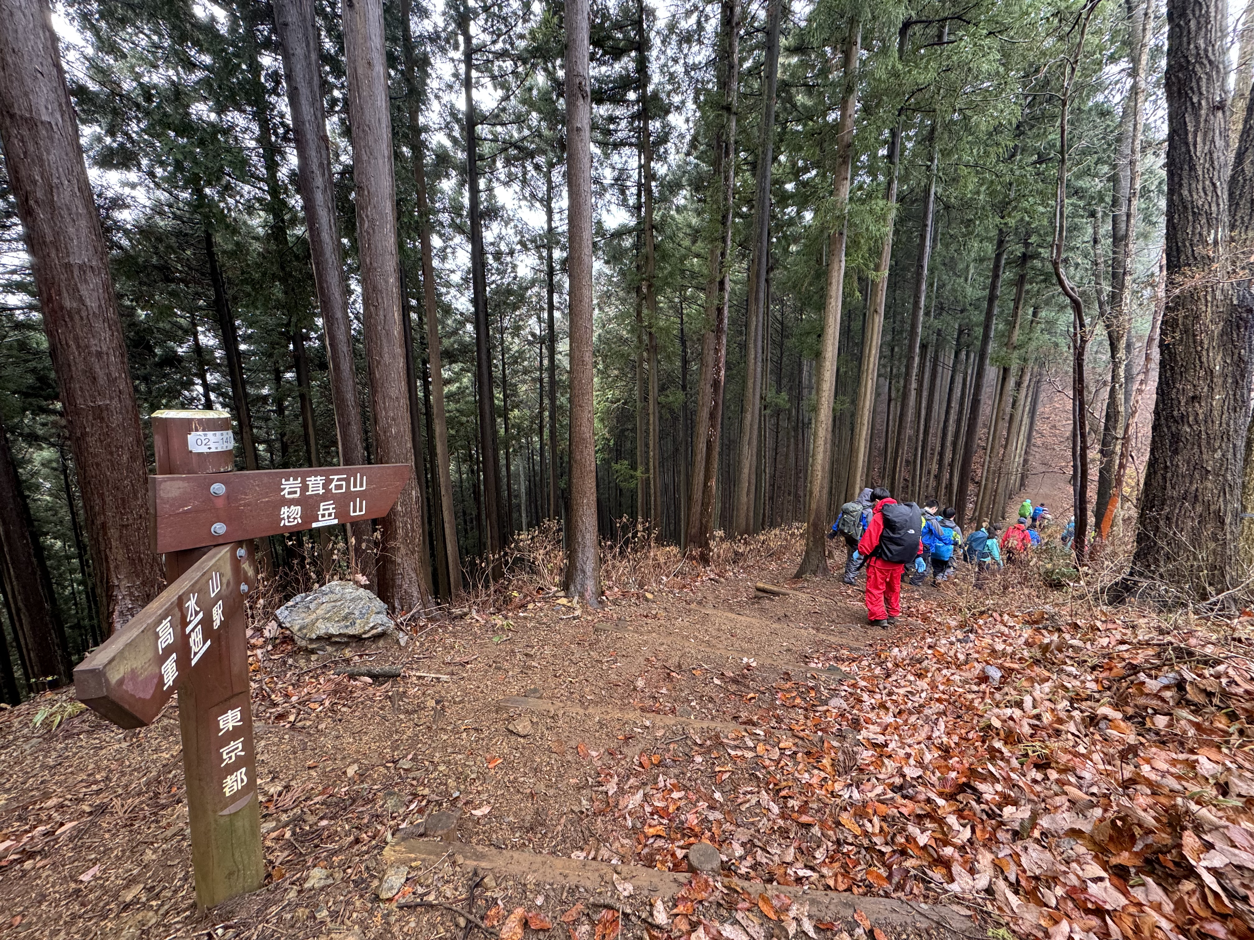 ガイドAさん、N先生、H先生、一年生10人、二年生3人の計 16人で東京都青梅市に位置する高水三山(高水山、岩茸石山、惣岩山)を縦走しました。