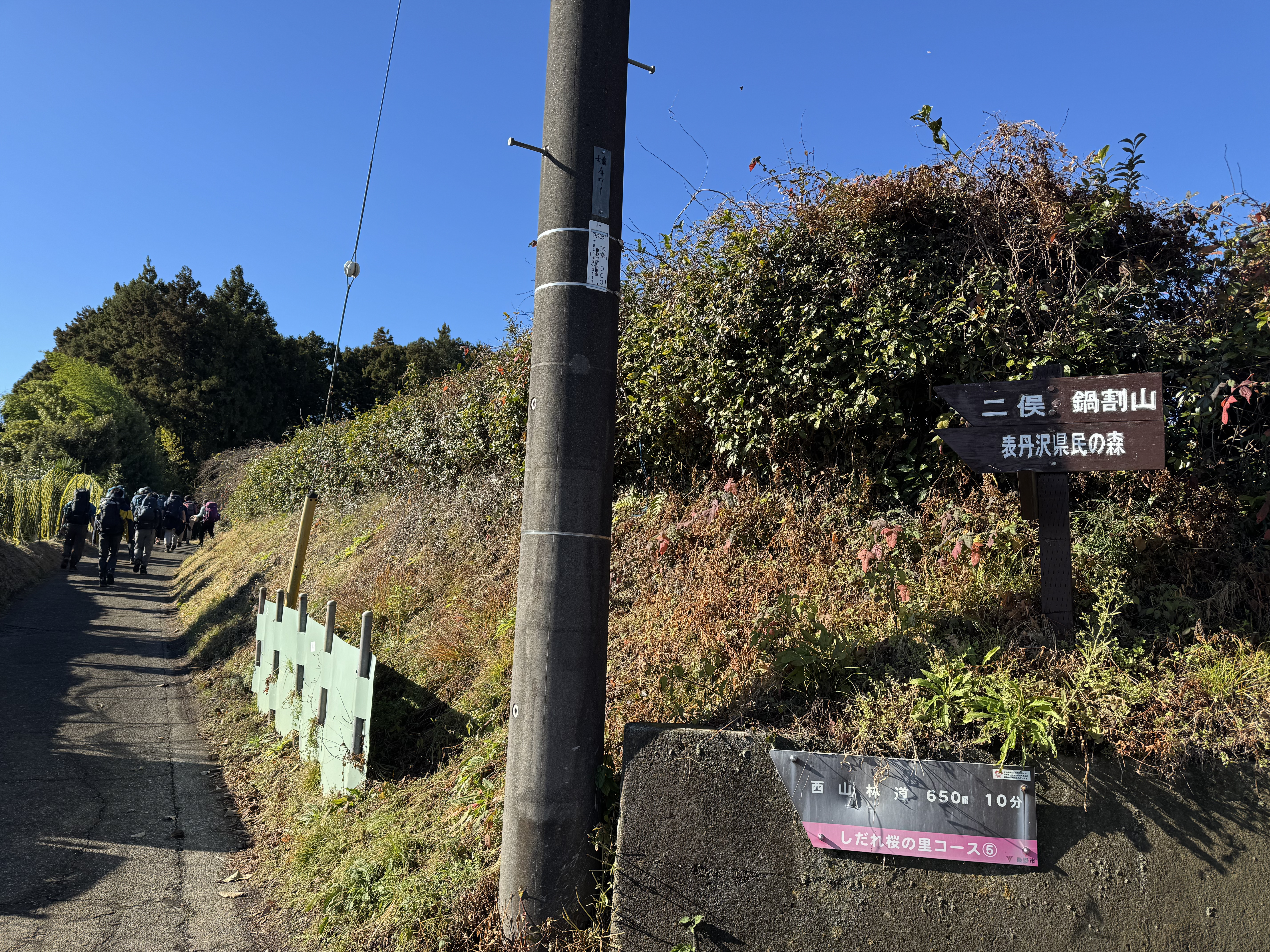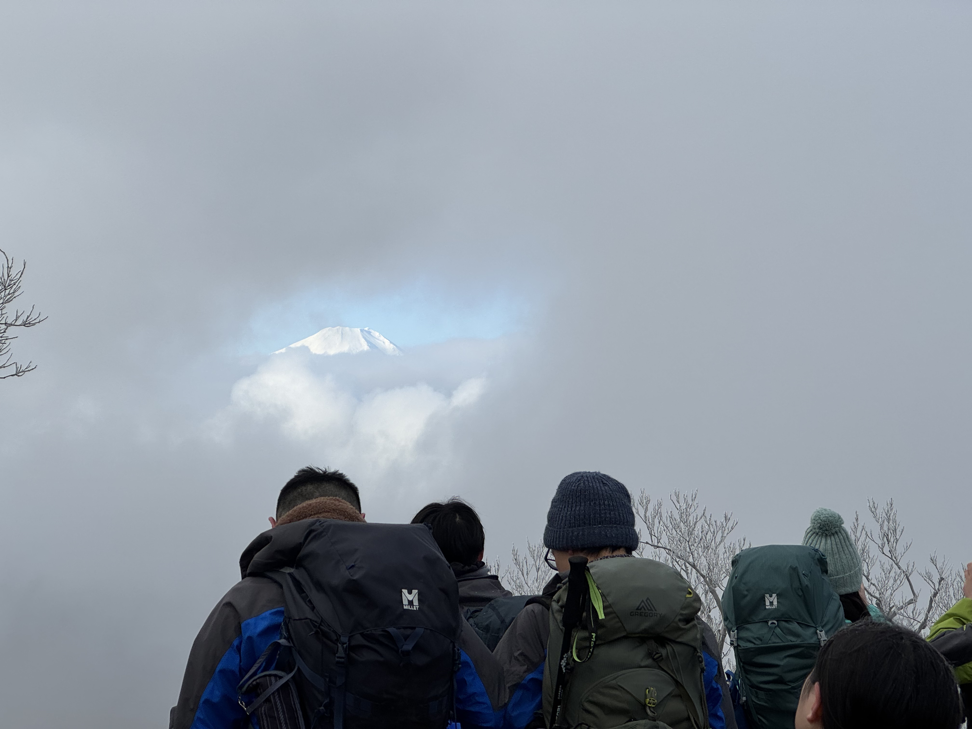 昼ご飯も食べ終わり体力、気力共に回復して鍋割山山頂に向かって歩き出しました。しかし本当の勝負はここからでした。舗装された道がなくなり、木の根を踏んでしばらく進んでいくと急に寒さが牙を向きました。私自身、寒さに耐性があると自負していたのですが、異常とも言える寒さに苦しめられました。動いている時は寒さに辛うじて耐えていたのですが、休憩で運動を止めると猛烈な寒さが身に沁みました。そして、ずっと冷たい手と耳が苦しかったです。みんなこのことを嘆きながら寒さに対抗していました。後半になるにつれてみんな喋らなくなって面白かったです。