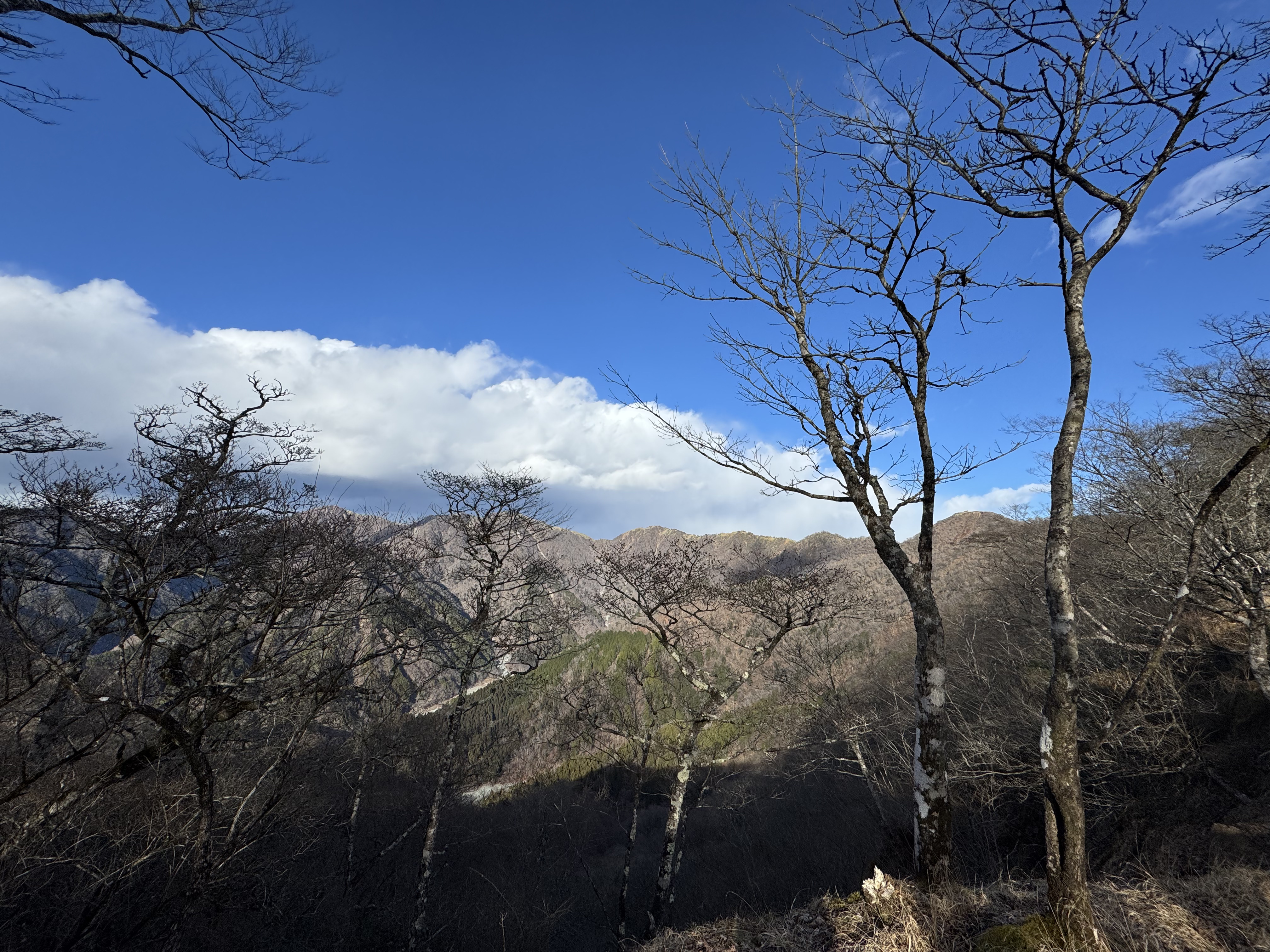 出発してからいくつもの山を登っては降りて登っては降りての繰り返しでした。私は前の方で歩いていたのですが、寒さのせいか会話が少なく静かな登山でした。霜柱が7センチほどあって、こんなに大きな霜柱を見るのは初めてでした。東京では見られないので驚いたのと同時に、踏むとザクザクして楽しかったです。神奈川県最高峰の蛭ヶ岳を通り越して少しすると、鎖場の下山が続きました。ガイドのAさんや前にいる部員が足場の状況などを説明してくれます。一人一人ゆっくりと安全に降りていったので時間がかかりました。