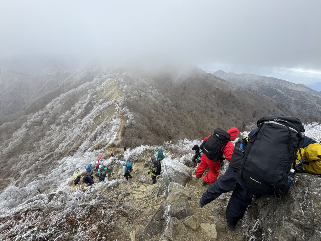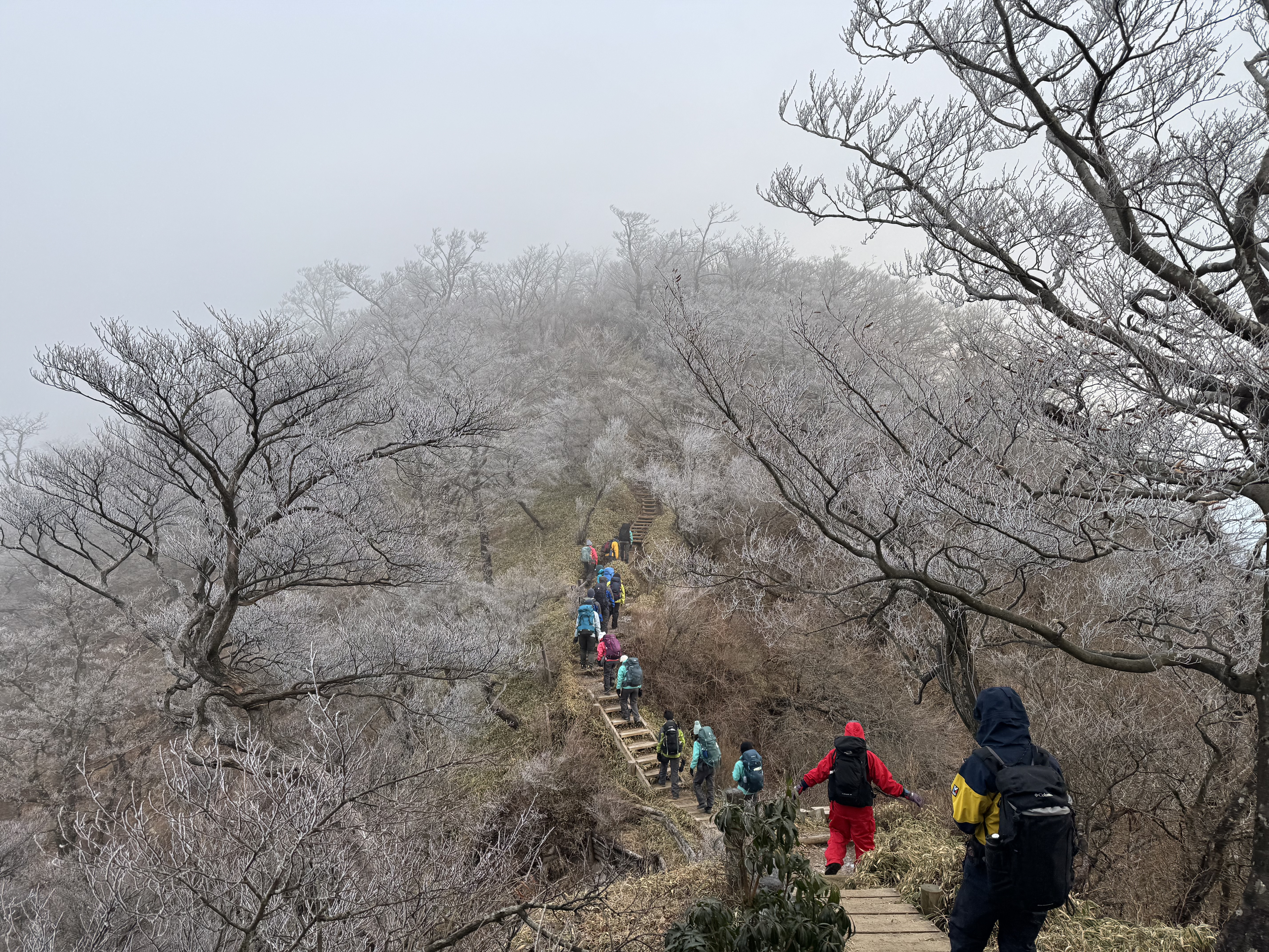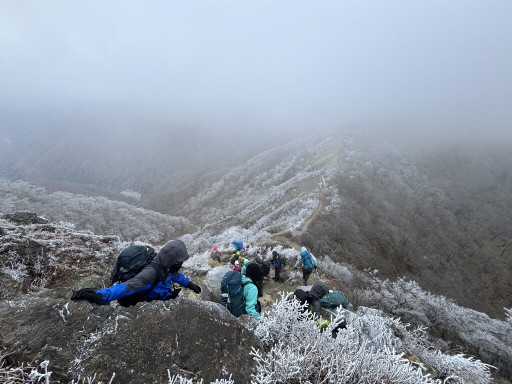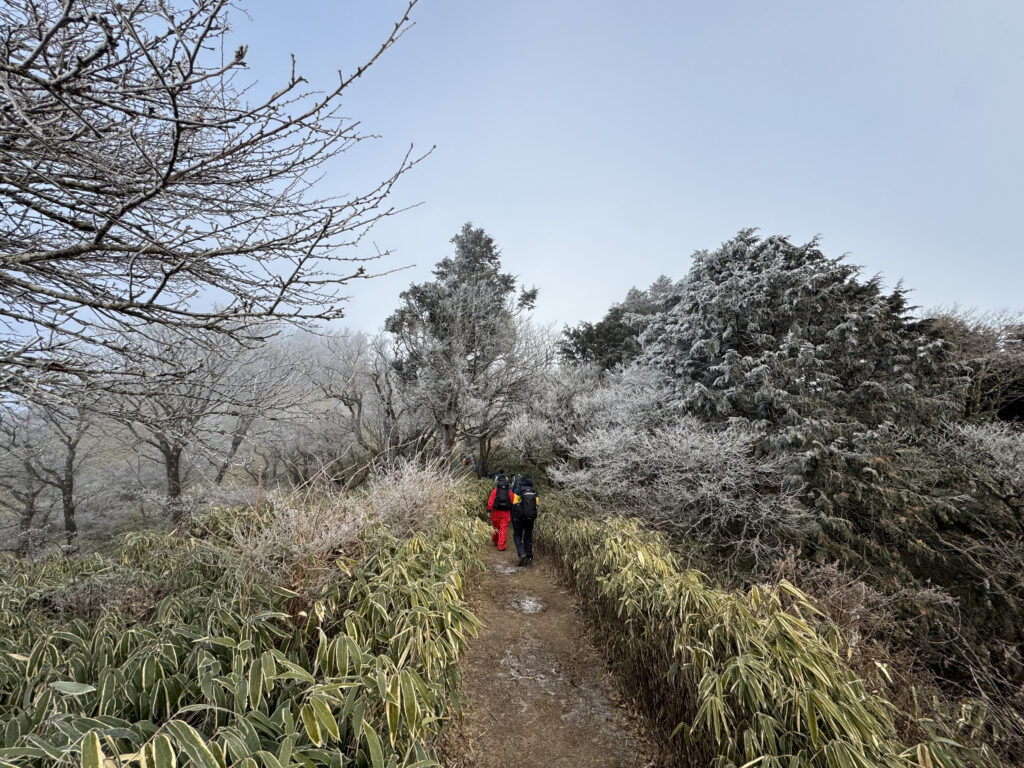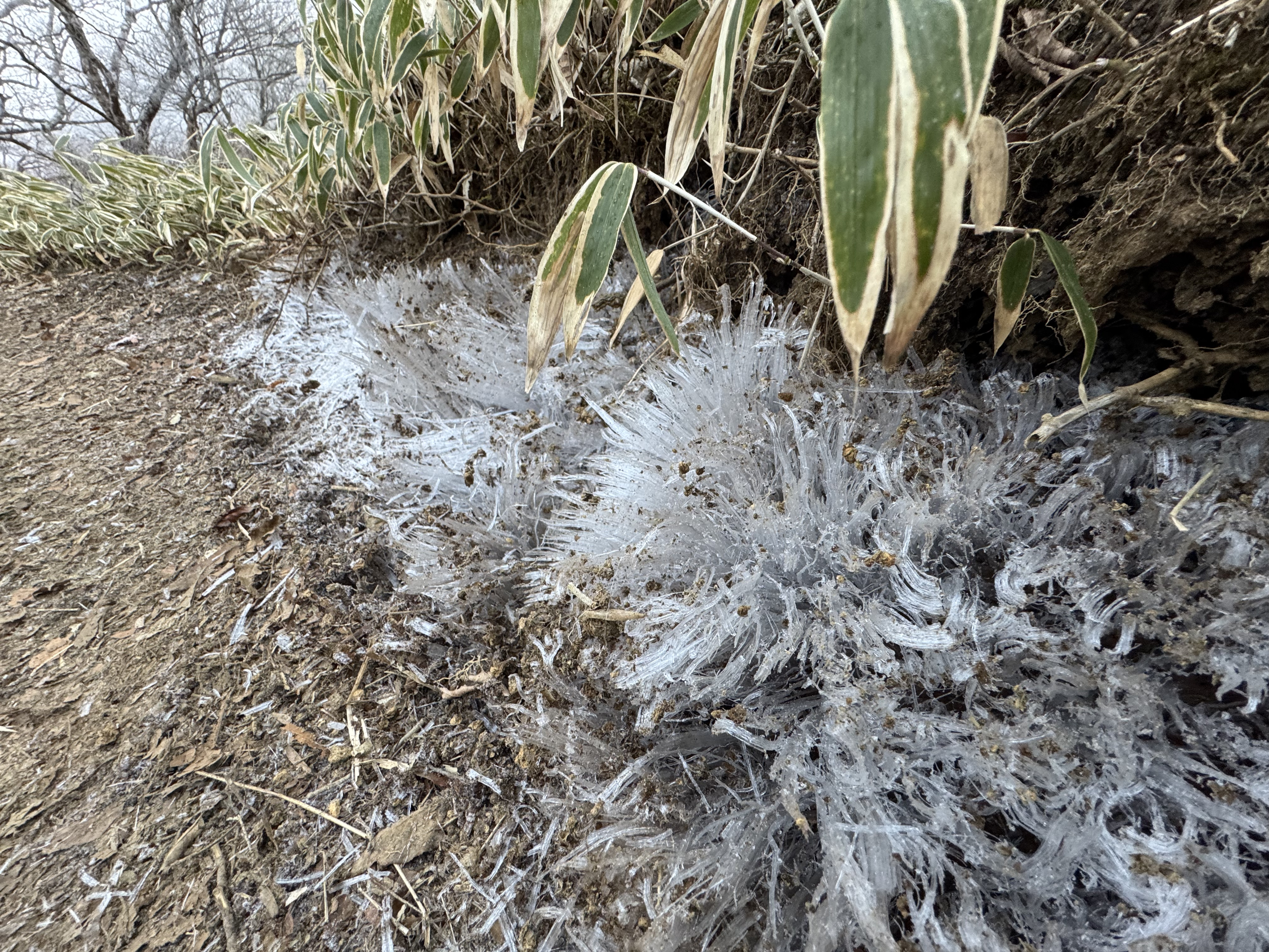 3日間の中で1番長く大変でしたが、雪が降ったり霜柱の道を歩いたり、霧氷を見ることもできて良かったです。また、アップダウンが激しい登山は初めてでとても良い経験になりました。