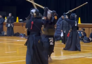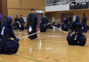 1月12日(月祝),佐倉錬成会に参加してきました。これまでいくつかの錬成会に参加したことで,声をかけてもらうことにつながりました。佐倉錬成会は初の開催で,市民体育館を借り,千葉県と東京都を中心とした約22校100名以上が集った大規模な錬成会でした。試合は1試合3分3本勝負形式,5人の団体戦で展開されました。午前と午後で計12校と対戦することができ,多くの実践経験を積むことができました。普段とは違い,初めての会場に慣れることや,1日で12校と戦い抜く体力や集中力などの観点からも学びがあり,実りがある錬成会となりました。