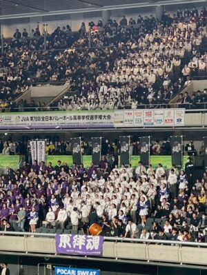 私たちは1月5日から行われていた全日本バレーボール高等学校選手権大会に出場された男子バレーボール部さんの応援に吹奏楽部のみなさんと参加させていただきました!