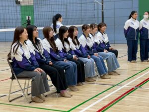 第一部はバレー大会でした!大接戦の末、現役生の勝利!!