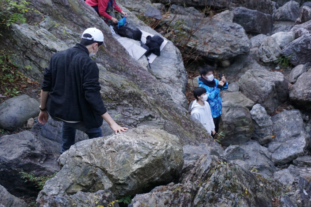 大きな岩を降りて水辺まで行ったり、吊り橋から写真を撮ったり、岩の上でのんびりしたり、思い思いの時間を過ごしました。