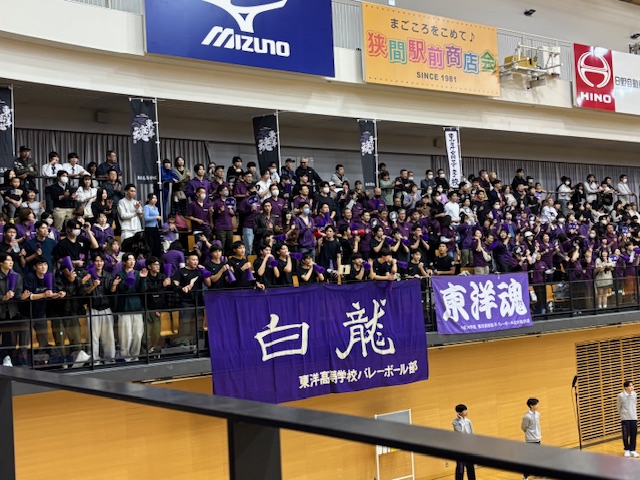 前年度春高ベスト4に輝いた東亜学園が相手ということで、始まる前はどうなることかと案じていたのですが、観客席から窺う限り、東洋の選手たちは焦る様子もなく自分たちのバレーをしているように見えました。試合は少しだけ東洋がリードをしながらも付かず離れずの攻防を繰り広げ、第一セットを25対23で先取することができました。