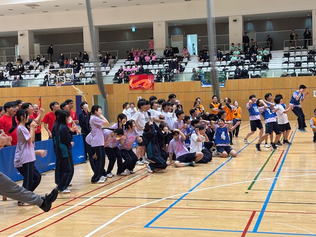 女子のドッジボールでは内野同数での延長戦があったり、男子バスケットボールの試合ではフリースロー対決の勝敗がなかなかつかなかったりしたことなどもあり、終了予定時刻を1時間半以上も押してしまいましたが、どの試合もとても盛り上がり、その余韻を残したまま午後のバレーボール競技に突入しました。