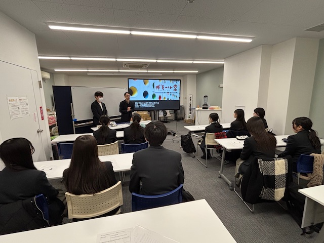 12月13日(土)、1年生4名、2年生6名の計10名が、体験型カフェ研修に参加しました。当日4時限目までの授業を終え、各自昼食を取り終えた後カフェテリアに集合し、その日の流れを確認した後、巣鴨駅から徒歩2分の場所にある「ガモール堂」へ。「ガモール堂」とは大正大学地域創生学部が実際の授業の一環として運営しているカフェで、このカフェの経営を通じて地域課題の解決やフードロス削減、商品開発や販売戦略といったことを実践的に学ぶことができます。