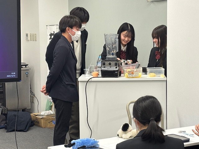 高大連携の一端として企画した今回の体験型探究活動でしたが、参加者それぞれが笑顔で終えることのできた一日でした。今年の3~4月、東洋生の考案したスムージーがガモール堂で販売されるのを楽しみにしています。